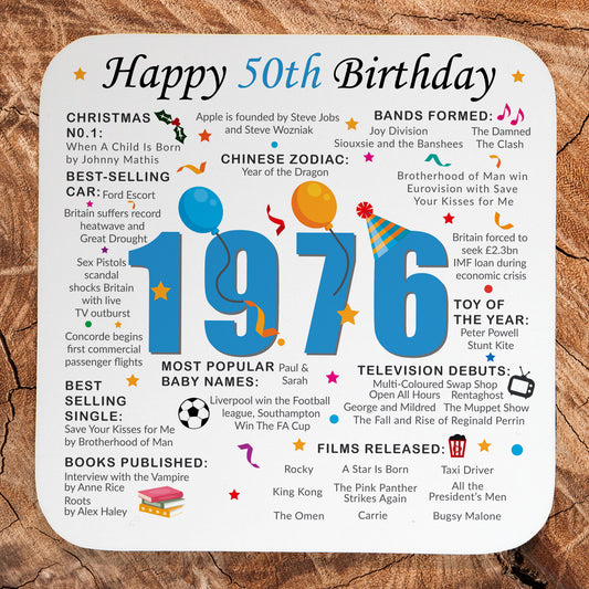 50th Birthday Coaster 2026 - Born in 1976 Facts