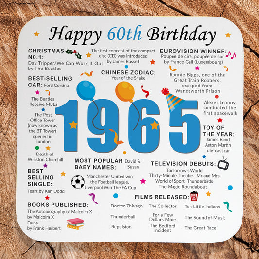 60th Birthday Coaster 2025 - Born in 1965 Facts