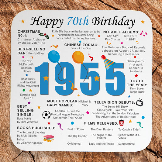 70th Birthday Coaster 2025 - Born in 1955 Facts