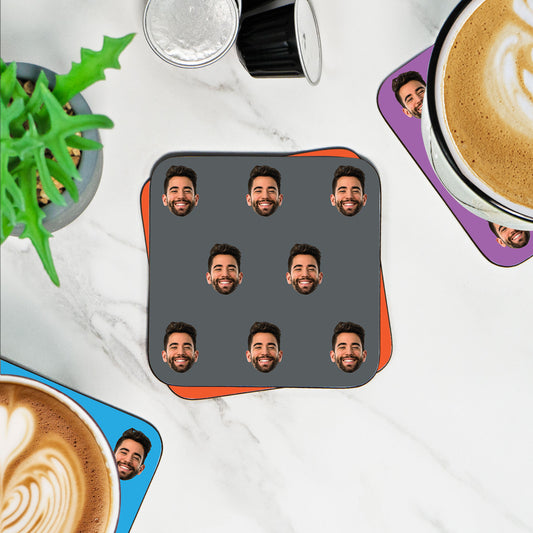 Face Pattern Custom Photo Coaster – Personalised Gift With Repeating Face Design