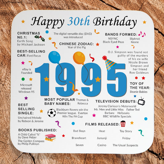 30th Birthday Coaster 2025 - Born in 1995 Facts