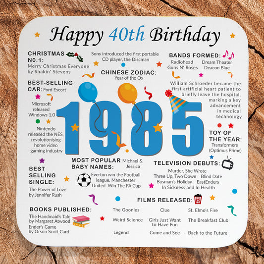40th Birthday Coaster 2025 - Born in 1985 Facts