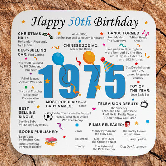 50th Birthday Coaster 2025 - Born in 1975 Facts