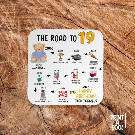 Personalised 19th Birthday Gift - Born in 2006 - The road to 2025 - Coaster