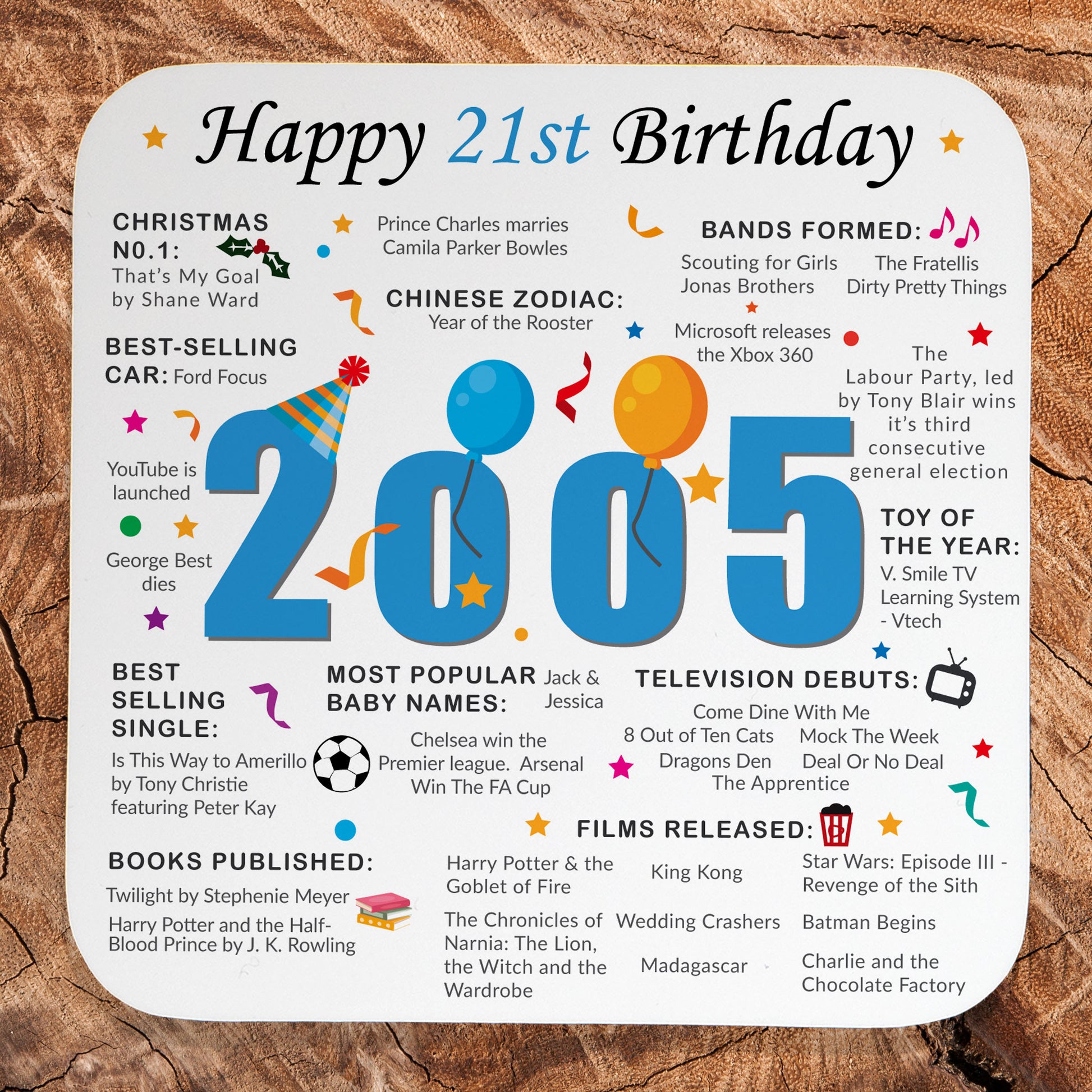 21st Birthday Coaster 2026 - Born in 2005 Facts