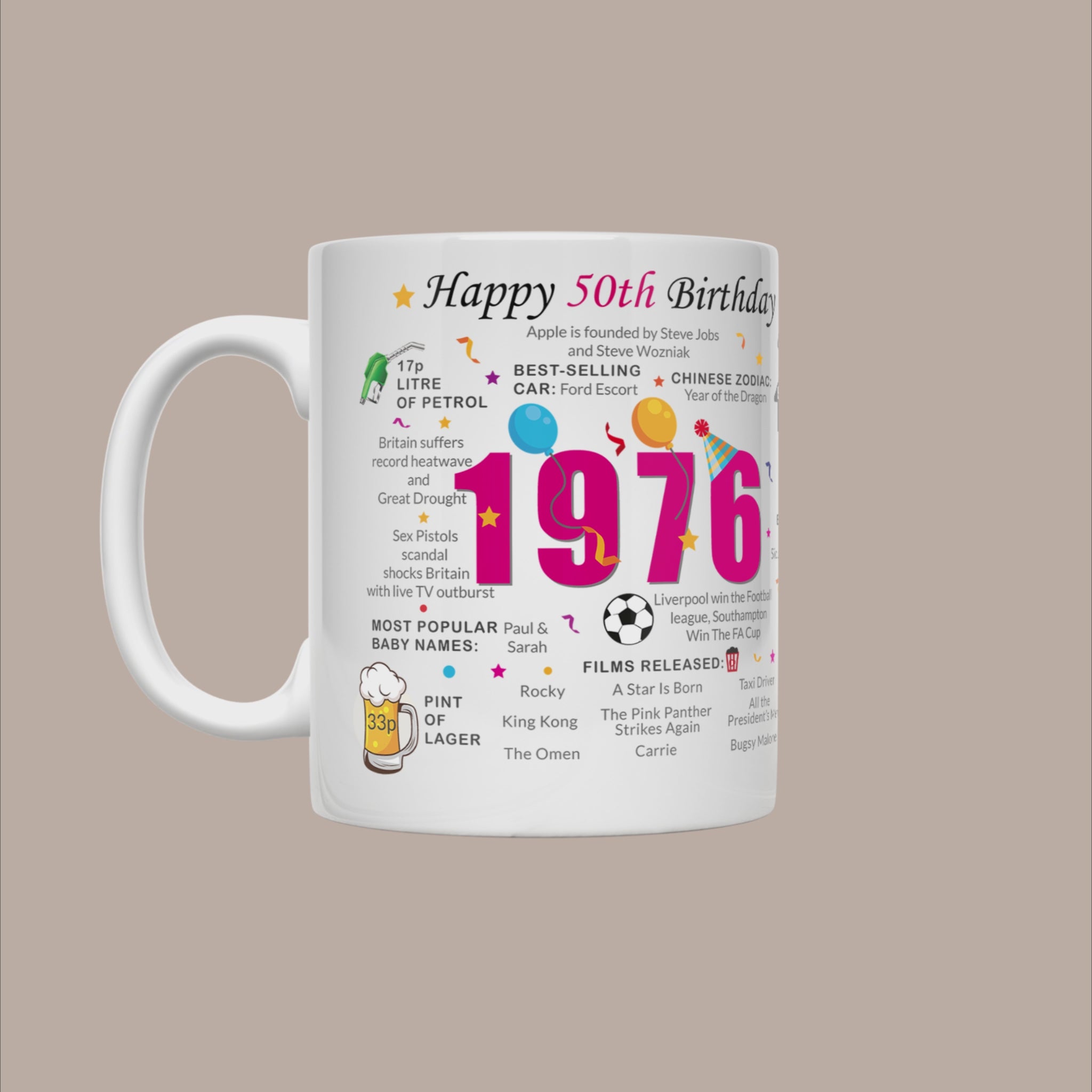 Introducing our 50th Birthday Mug 2026 β Born in 1976 Facts & Events! π