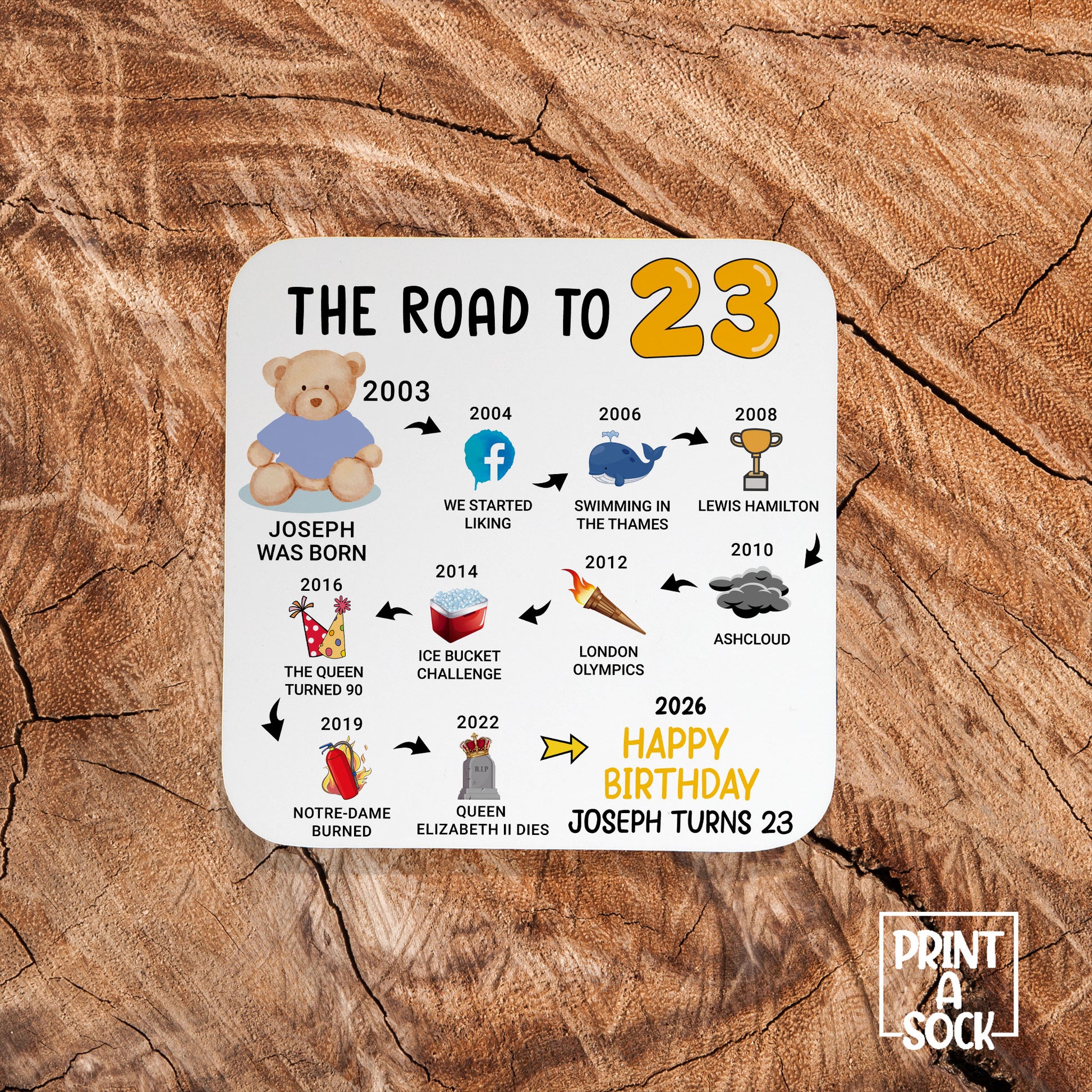 Personalised 23rd Birthday Gift - Born in 2003 - The road to 2026 - Coaster