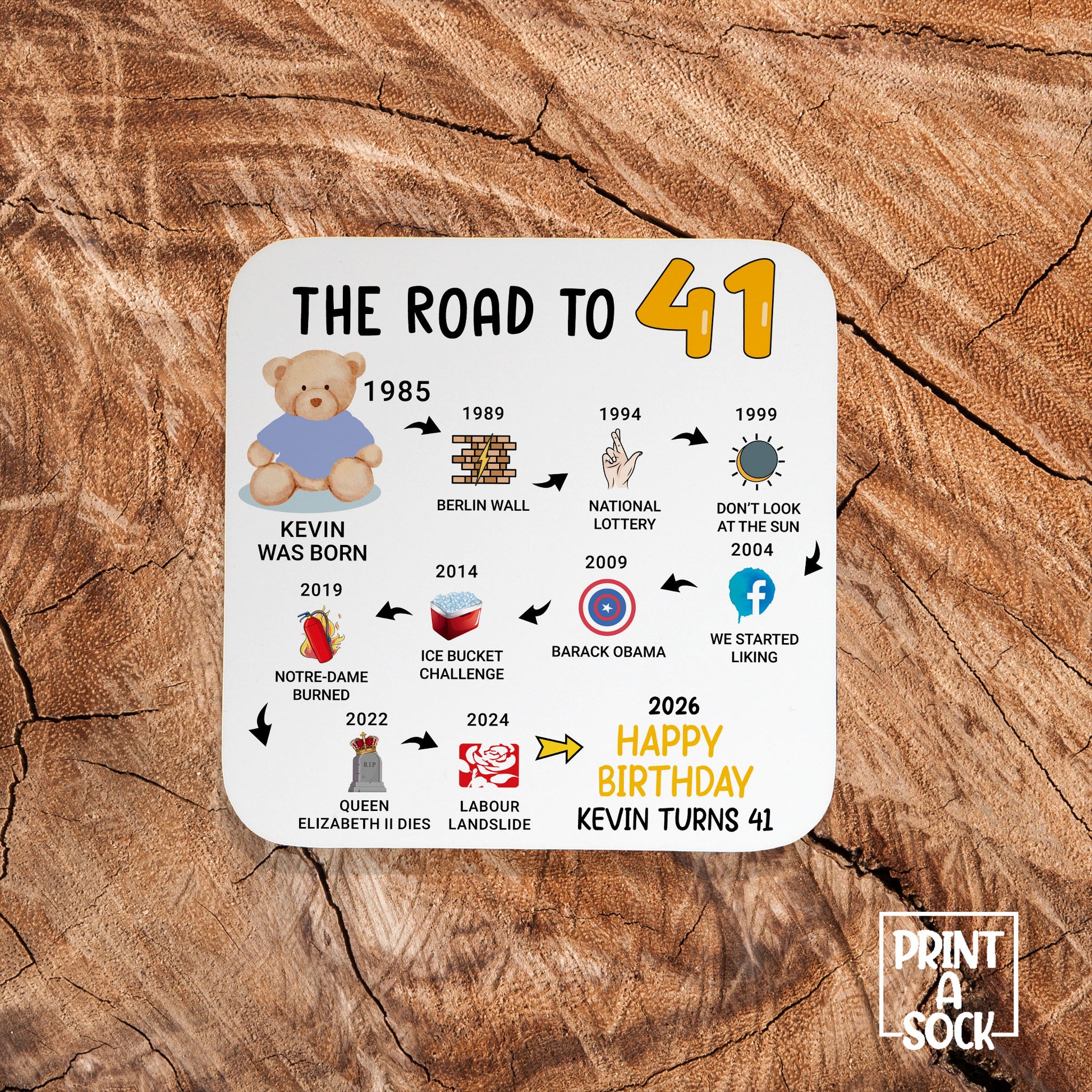 Personalised 41st Birthday Gift - Born in 1985 - The road to 2026 - Coaster