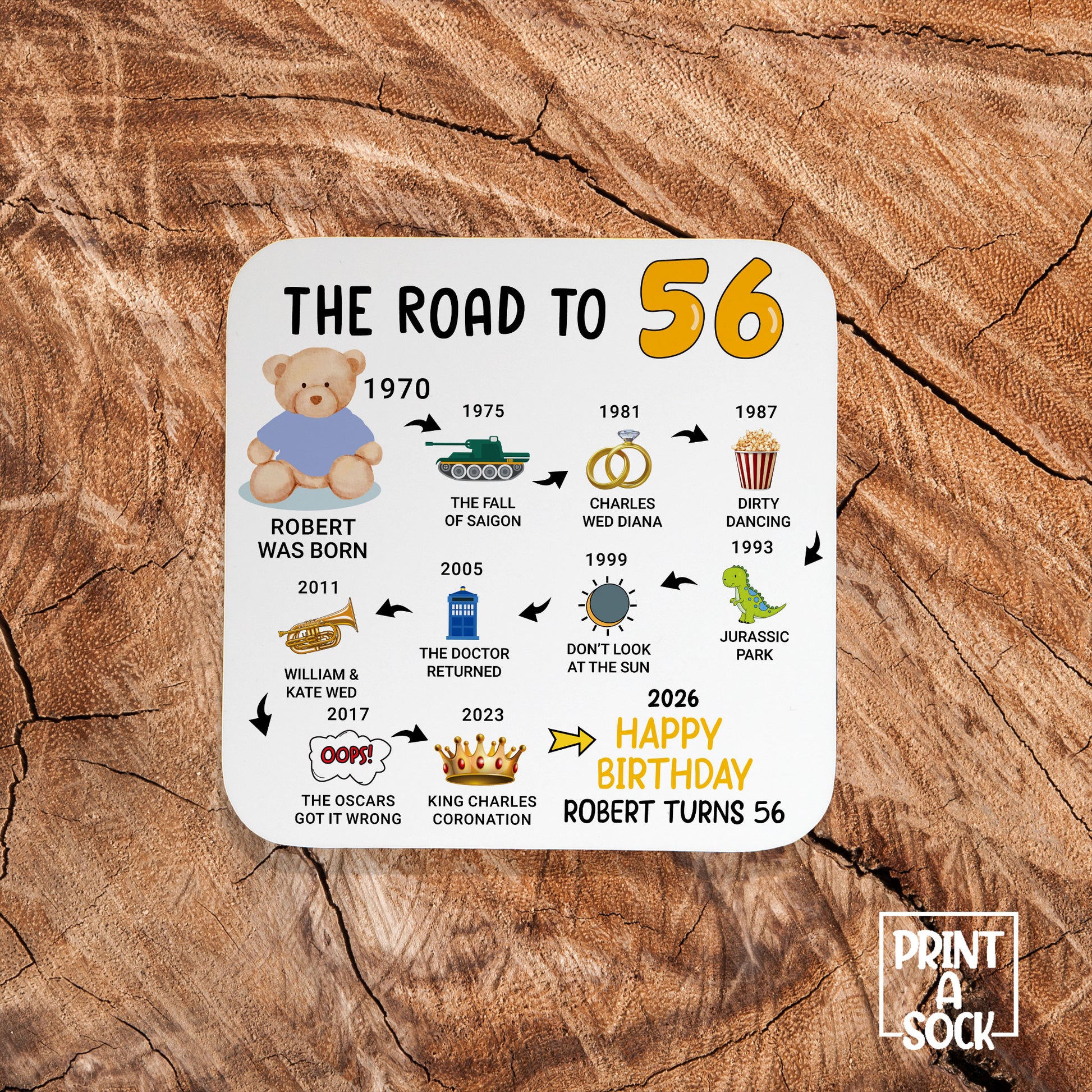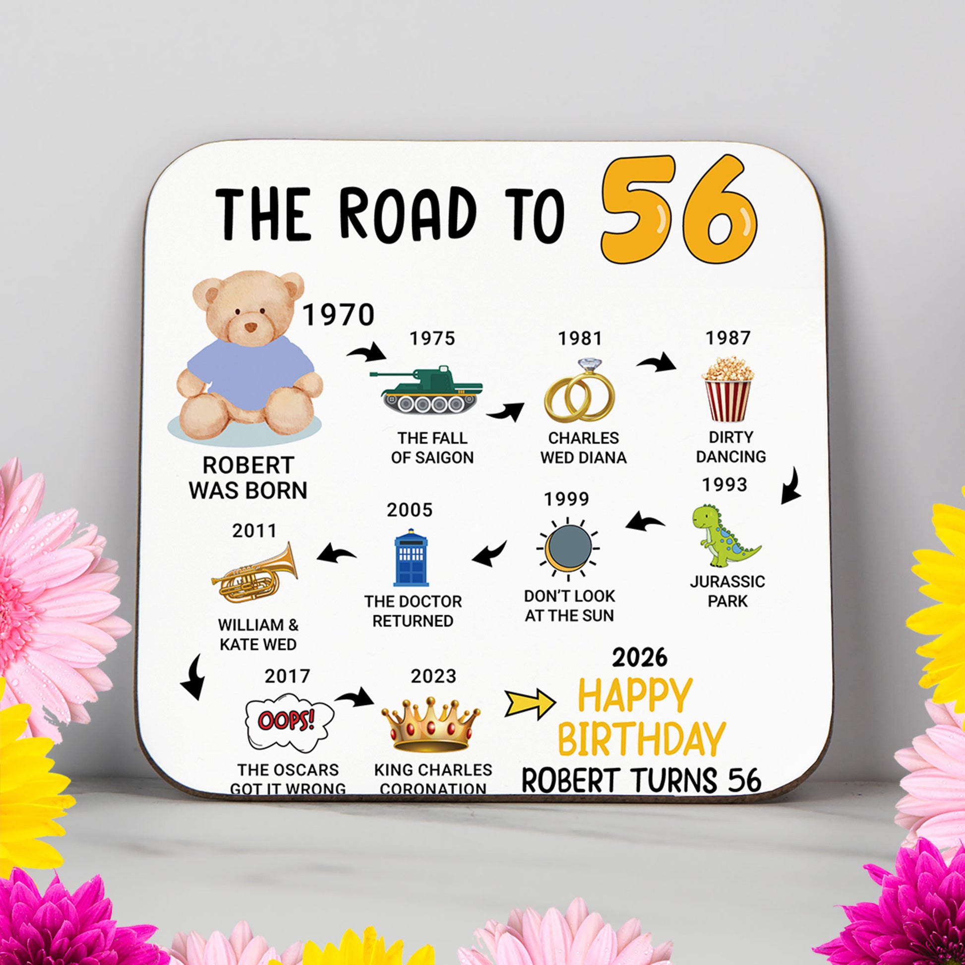 Personalised 56th Birthday Gift - Born in 1970 - The road to 2026 - Coaster