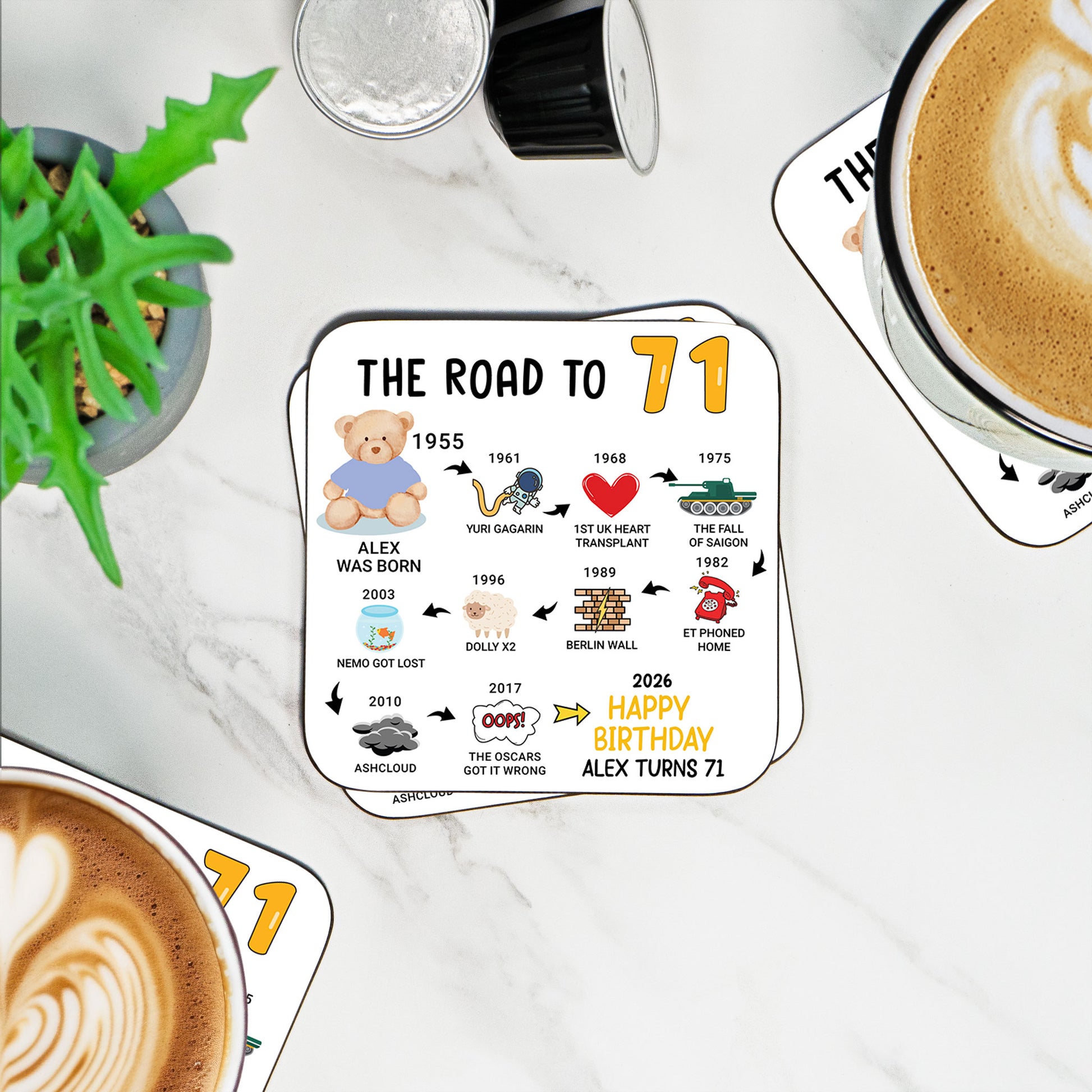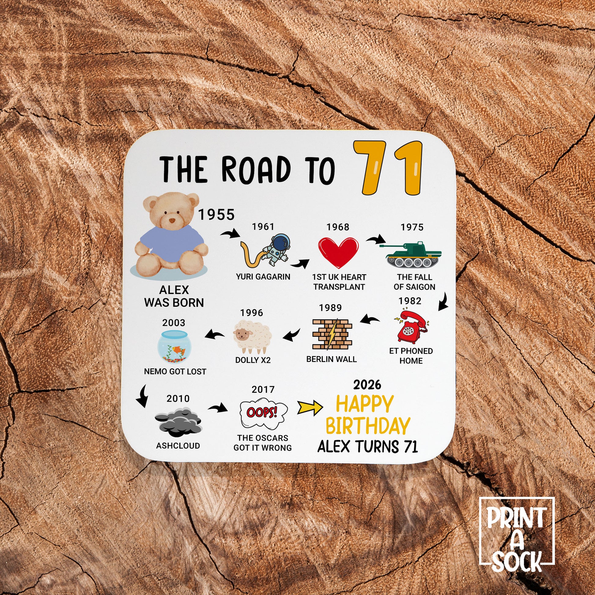 Personalised 71st Birthday Gift - Born in 1955 - The road to 2026 - Coaster